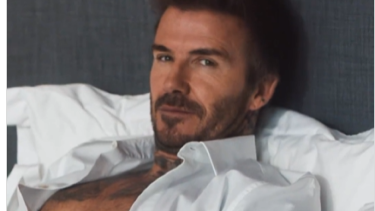 Na početku reklame, 48-godišnji bivši fudbaler leži u krevetu u raskopčanoj bijeloj košulji, a zatim pozira bez majice pokazujući svoje mišiće i tetovaže.