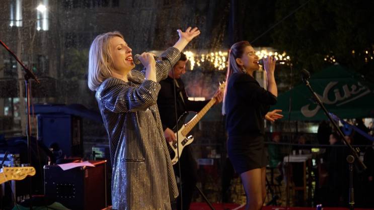 Predanost muzičara i njihove rasplesane publike na Trgu nezavisnosti se isplatila, jer je nakon nekoliko odsviranih numera kiša stala, te su svi mogli da nastave da bezbrižno uživaju u hitovima regionalno poznate pjevačice i njenog čuvenog benda. Od energičnih pjesama kao što su “Kompjuter” i “Mlada”, preko novih hitova kao što su “Kvar”, “70”, “Minuta”, pa sve do velikog finala uz “Volim te”, publika se dobro provodila, plesala i pjevala uglas.