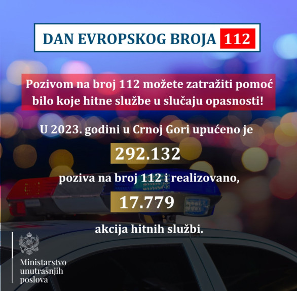 Dan jedinstvenog evropskog broja za pozive u hitnim situacijama 112 obilježava se 11. februara u cilju skretanja pažnje javnosti na važnost sigurnosti i bezbjednosti u Evropi, kao i na značaj postojanja ovog broja posredstvom kojeg građani mogu dobiti pomoć u različitim hitnim situacijama, saopšteno je iz MUP-a.