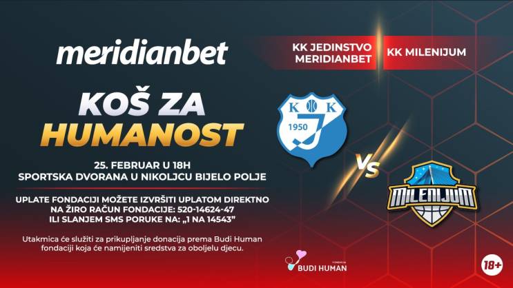 Poziva sve sugrađane da prisustvuju utakmici humanitarnog karaktera između KK Jedinstvo Meridianbeta iz Bijelog Polja i KK Milenijuma iz Podgorice, koja će se odigrati u 18 časova, 25. februara u sportskoj dvorani u Nikoljcu, Bijelo Polje.