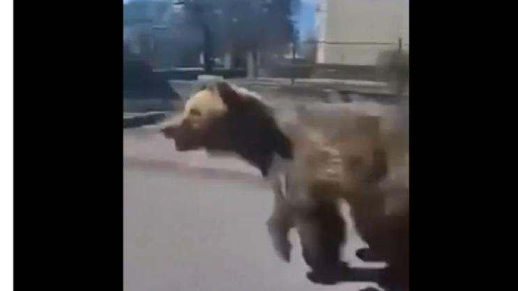 Snimci objavljeni na društvenim mrežama prikazuju medvjeda kako skakuće po putu, a na jednom nasrće na čovjeka na putu.