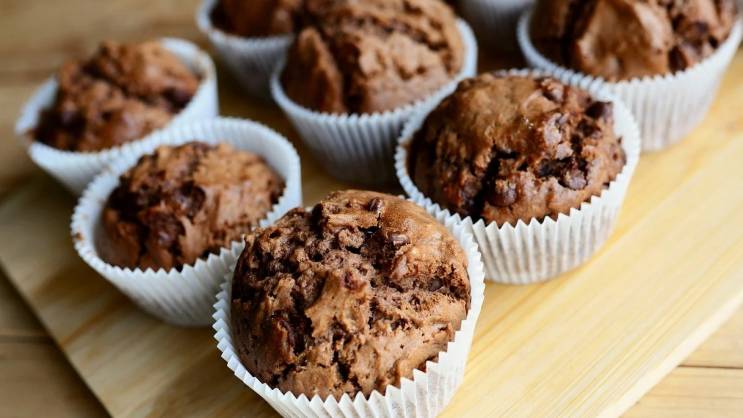 U jednoj posudi pomiješajte brašno, šećer, kakao, sodu bikarbonu i vanilin šećer. Dodajte vodu, ulje i sirće pa sjedinite. U kalup za mafine obložen papirnim korpicama preručite smjesu, najbolje kašikom za sladoled.