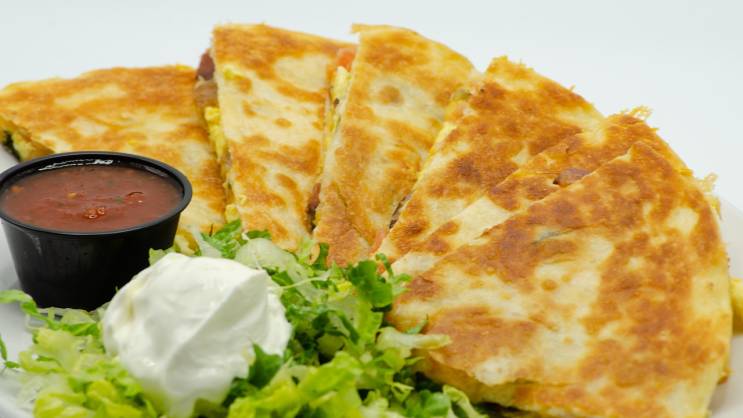 Kada tortilja bude gotova, izvadite je i pospite po njoj rukolu i isijecite na trouglove, poput pice.