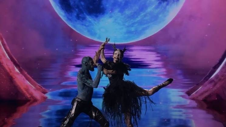 Naime, ona se na sceni pojavila sa rogovima i u specijalnoj kreaciji i sa efektnom šminkom, a sve kako bi dočarala stihove pjesme "Doomsday Blue" (Plava Sudnjeg dana).
