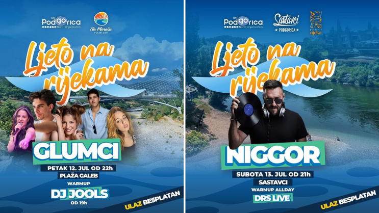 "U petak, 12. jula, na plaži Galeb će biti organizovan muzički program, nastupiće DJ Mr Jools i sastav Glumci, dok će u subotu, 13. jula, posjetioce na Sastavcima zabavljati NIGGOR".