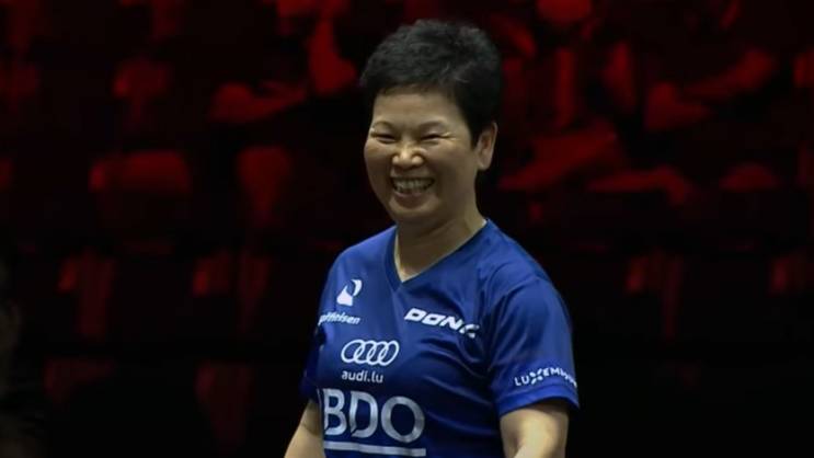 La belle image d'hier, avec la Luxembourgeoise Ni Xia Lian ????????, qui a remporté son premier tour en individuel Tennis de Table à l'age de… 61 ans !