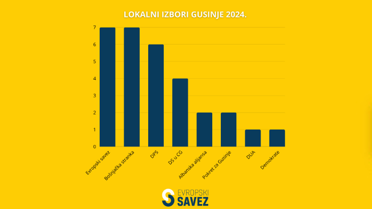 Konstituenti Evropskog saveza, sa osvojenih 7 od ukupno 14 mandata naše pobjedničke koalicije, najveći su suštinski pobjednici juče održanih lokalnih izbora u Gusinju. Ovo iz razloga što pomenuti izbori predstavljaju prvo izborno nadmetanje članica Evropskog saveza od njegovog nedavnog formiranja, saopšteno je iz Evropskog saveza.