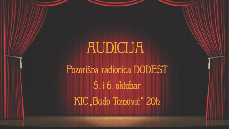 DODEST-ova pozorišna radionica glume organizuje audiciju za prijem novih članova, saopšteno je iz KIC-a.