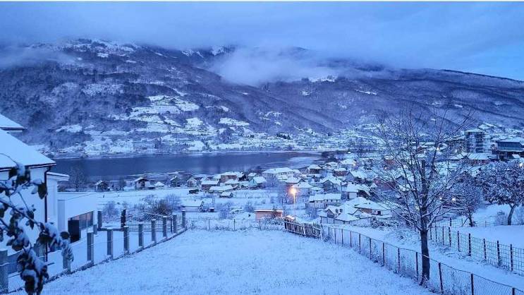 Plavsko jezero pod snijegom izgleda čarobnom, pa zimska razglednica dobija posebnu notu.
