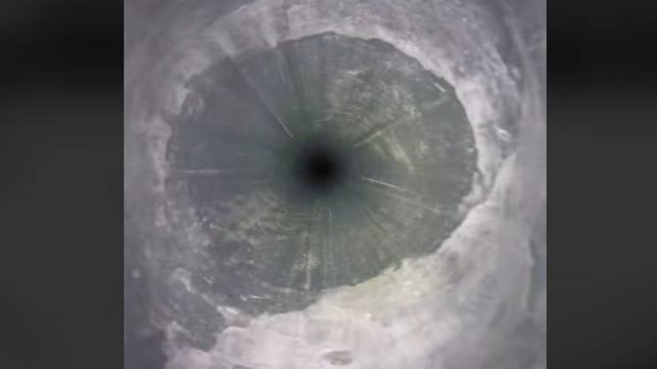 Snimak prikazuje kameru kako ubrzava dok je gravitacija povlači prema dnu ledene cijevi, stvarajući utisak putovanja kroz neobični ledeni tunel. Na samom dnu dočekuje ju sniježni pokrov, ispod kojeg se, prema istraživaču, nalazi stijena - tačka do koje su došli bušenjem.