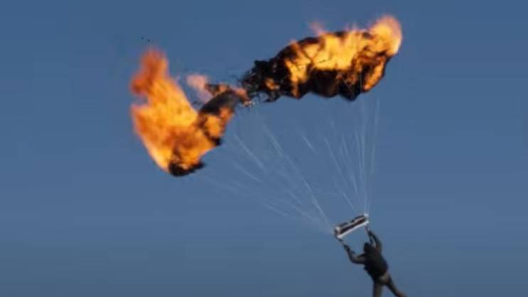 U videu objavljenom na YouTube kanalu Paramount Picturesa, studija koji stoji iza filma, Kruz se vidi kako raspravlja o logistici sa svojim kaskaderskim timom i govori: "Iskočiću. Ako se ovo zapetlja dok gori, počeću se vrtjeti i gorjeti."