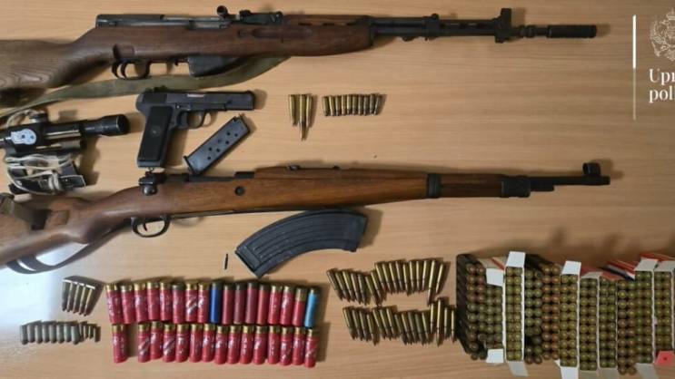 “Pretresom kod lica R.K. pronađeni su i oduzeti pištolj marke Zastava M57, puška nepoznate marke sa pet komada municije u okviru, jedan okvir sa pet komada municije i optički nišan u ilegalnom posjedu”, navode iz policije.