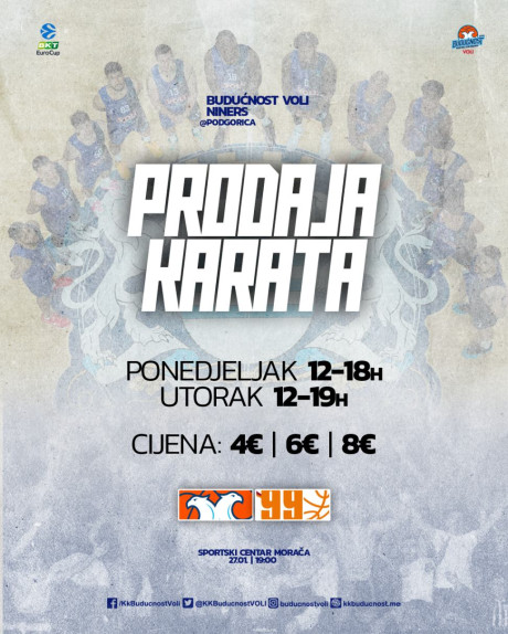 Karte se mogu kupiti na biletarnici Mtel dvorane "Morača" u ponedjeljak od 12 do 18 časova, kao i u utorak od 12 časova do početka utakmice, po cijenama od 4, 6 i 8 eura.
