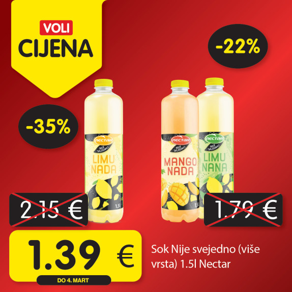 Širok izbor proizvoda po najpovoljnijim cijenama na tržištu u svim Voli i Naš diskont marketima.