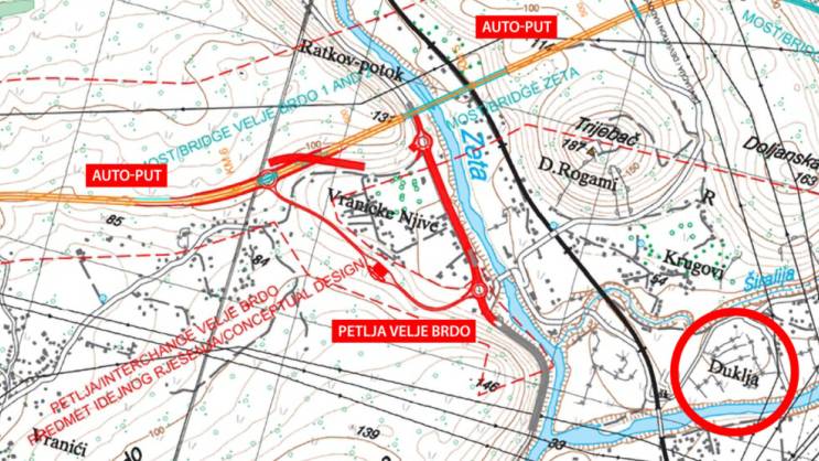 „Iz tog razloga, bilo kakvi zaključci o konkretnim tehničkim elementima projekta ne mogu se pouzdano donositi na osnovu tih skica, bez uvida u detaljniju projektnu dokumentaciju. Arheološki lokalitet Duklja nije ugrožen saobraćajnicom, niti bilo kakvim priključkom. Prilikom definisanja trase posebno se vodilo računa o očuvanju ovog izuzetno značajnog kulturno-istorijskog lokaliteta. Njegova udaljenost od planirane trase auto-puta iznosi cca 1 km, čime je izbjegnuto bilo kakvo direktno ili indirektno ugrožavanje“, naglašavaju iz Monteputa.
