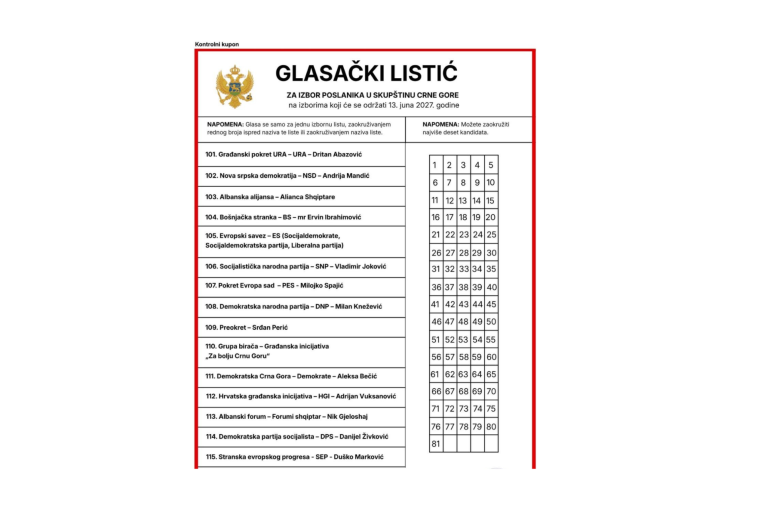 „Usvajanjem zakona o otvorenim listama glasački listić bi se suštinski dijelio na lijevu i desnu stranu. Birač glasa tako što na lijevoj strani glasačkog listića zaokružuje redni broj ispred jedne izborne liste ili zaokruživanjem naziva izborne liste, a na desnoj strani glasačkog listića zaokružuje brojeve najviše do 10 kandidata sa izborne liste za izbor poslanika u Skupštini Crne Gore, odnosno do 7 kandidata sa izborne liste za izbor odbornika u Skupštini opštine, Skupštini Glavnog grada, Skupštini Prijestonice“, objašnjavaju iz URE.