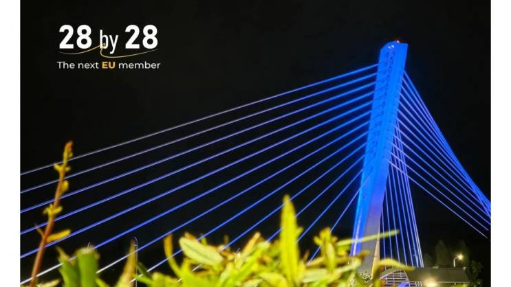 "Obilježavajući istorijski napredak Crne Gore na putu ka članstvu, most Milenijum večeras svijetli u bojama EU", saopšteno je iz Ministarstva evropskih poslova.