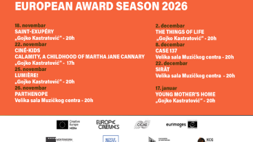 Crnogorska kinoteka, u saradnji sa Evropskom filmskom akademijom (EFA), uz podršku programa MEDIA Kreativna Evropa, Filmskog centra Crne Gore i brojnih drugih partnera, predstavlja jedinstvenu manifestaciju posvećenu raznolikosti, kvalitetu i bogatstvu evropske kinematografije - European Award Season 2026.