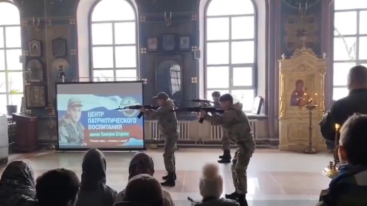 Na društvenim mrežama širi se snimak iz Rusije na kojem se vidi grupa maloljetnika u uniformama kako u prostoru pravoslavne crkve rukuje automatskim oružjem, prenosi Index.