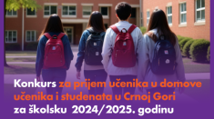 Ministarstvo prosvjete, nauke i inovacija objavilo je danas Konkurs za prijem učenika u domove učenika i studenata u Crnoj Gori za školsku 2024/2025. godinu.