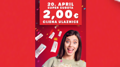 Bioskop Cineplexx Big Fashion obradovaće svoju publiku u subotu, 20. aprila, kada će se u sklopu akcije SUPER SUBOTA ulaznice za sve filmske naslove na repertoaru naći po sniženoj cijeni od 2,00€! Publika će imati priliku da uživa u najnovijim filmskim naslovima po super povoljnoj cijeni. Ulaznice su već u prodaji na blagajnama bioskopa.