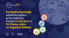 Evropska komisija je zvanično odobrila isplatu prve tranše sredstava Crnoj Gori u okviru Instrumenta EU za reforme i rast, čime je nastavljen pozitivan trend u sprovođenju Plana rasta za Zapadni Balkan i potvrđena posvećenost evropskoj perspektivi Crne Gore, navodi se u zajedničkom saopštenju Ministarstva evropskih poslova i Ministarstva finansija.