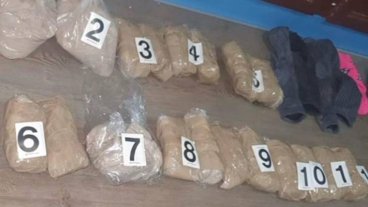 Kako su naveli iz UP, pregledom vozila pronađen je ruksak u kojem se nalazilo 11 pvc pakovanja sa sadržajem praškaste materije svijetlo braon boje za koju se sumnja da je opojna droga heroin, kao i smjesa za miješanje sa ovom materijom, ukupne mase 6,5 kilograma.