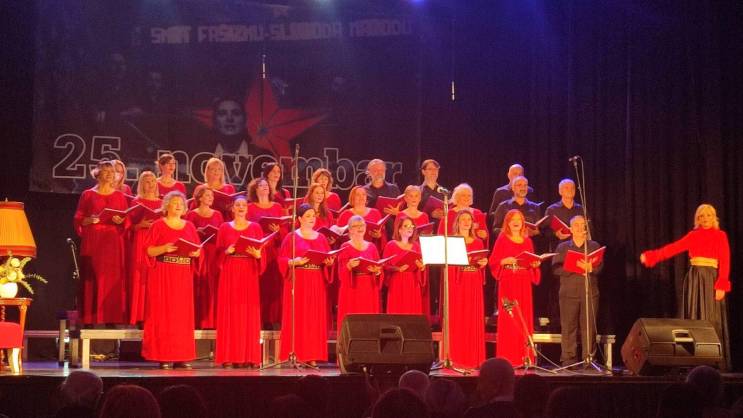 "Biće to njihov stoti koncert, a oko 50 horista, uz umjetničko vođstvo Ivane Vlajnić, izvešće na svoj prepoznatljiv način, višeglasno, popularne numere: Bijelog dugmeta, Plavog orkestra, Olivera Mandića, Smaka, Perpera, Džibonija, Urbana, Galije, i druge, i naravno dio svog antifašističkog repertoara po kojem su regionalno poznati. Gosti koncerta biće: Daniel Popović, Verica Čuljković, Božo Bulatović i grupa Grim, a voditeljka večeri Dušica Vugdelić", navodi se u saopštenju.