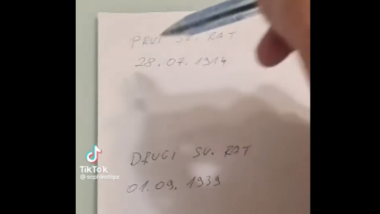 Jedan korisnik na platformi X podijelio je niz datuma iz Prvog i Drugog svjetskog rata, kao i iz ratnih sukoba u Ukrajini. Zbir svih tih godina iznosi 68. Međutim, kada se ti brojevi rastave, zbir se svede na 5. U daljem istraživanju, korisnik je analizirao ove rezultate, a kao konačan zbir dobio je broj 6."