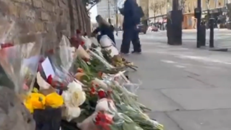 #MoscowAttack :- In London, People Bringing Flowers To Russian Embassy To Show Solidarity With The Victims Of Moscow Attack.
