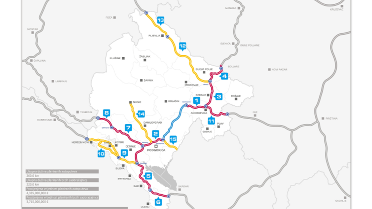 Monteput d.o.o. raspisao javni poziv za izradu idejnog rješenja brze saobraćajnice Danilovgrad – Nikšić, dužine ~ 31 km.