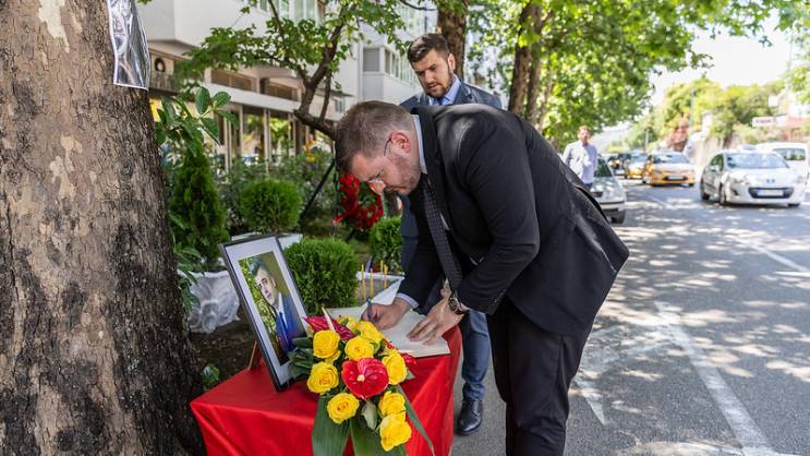 Potpredsjednik Vlade Crne Gore za politički sistem, pravosuđe i antikorupciju mr Momo Koprivica položio je vijenac na mjesto gdje je prije 20 godina ubijen Duško Jovanović, glavni i odgovorni urednik DAN-a i hrabri borac protiv korupcije i kriminala.