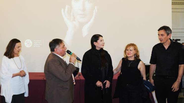 Nakon laudacije koju je održao profesor Gabriele Romeo, umjetnica Marina Abramović se obratila prisutnima, naglašavajući aktivnu ulogu umjetnosti u savremenom društvu.