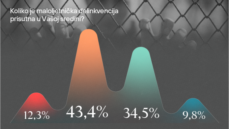 “Problem maloljetničke delinkvencije je, takođe, uočen od strane većine građana/ki (55,7 odsto), bilo kao povremena ili česta pojava, dok oko trećine (34,5 odsto) smatra da je to rijetko, a manje od 10 odsto vjeruje da to nikada nije prisutno u njihovoj sredini. Brojni se faktori navode kao uzroci devijantnog ponašanja i vršnjačkog nasilja maloljetnika, a ističu se socijalni (24,9 odsto), porodični (23,8 odsto), ali i obrazovno-vaspitni (18,9 odsto)”, kazali su iz CGO.