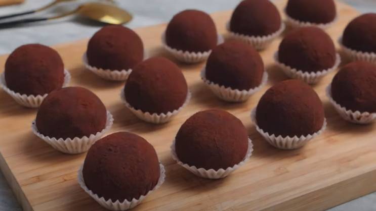 Oblikujte kuglice težine oko 30 g i uvaljajte u kakao prah.