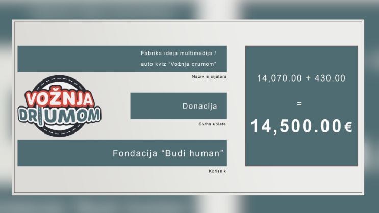 U završnici prve sezone, edukativnog i zabavnog kviza „Vožnja drumom“, prikupljeno je značajnih 14.500 eura.