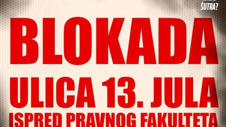Neformalna grupa studenata “Kamo śutra” saopštila je da će danas od 17.26 sati sa dvadeset tri minuta buke blokirati Ulicu 13. jula ispred Pravnog fakulteta u Podgorici.