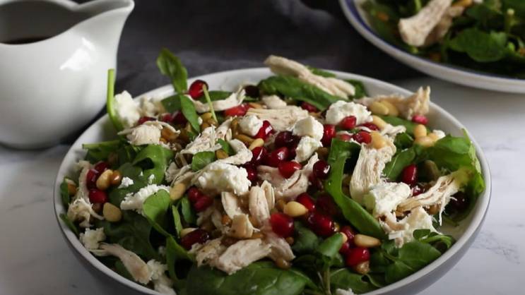 U veću posudu staviti piletinu, kikiriki, očišćen nar, kukuruz, so, pavlaku i majonez. Sve dobro sjediniti i poslužiti kao salatu ili namaz. Poslužite uz tost hljeb, krekere ili svježe povrće.