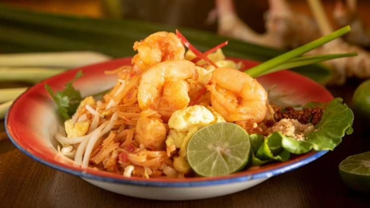 Izdinstajte malo luka i dodajte gambore, nakon što su odstojali oko 15 minuta u navedenoj mješavini. Propržite, pa sklonite u činiju sa strane. Pospite malo izmrvljenog kikirija.