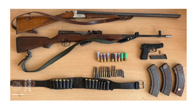 Službenici Sektora granične policije iz Nikšića izvršili su pretres na dvije lokacije i oduzeli poluautomatsku pušku, lovačku pušku, startni pištolj, tri okvira za automatsku pušku i 38 komada municije, saopšteno je iz Uprave policije (UP).