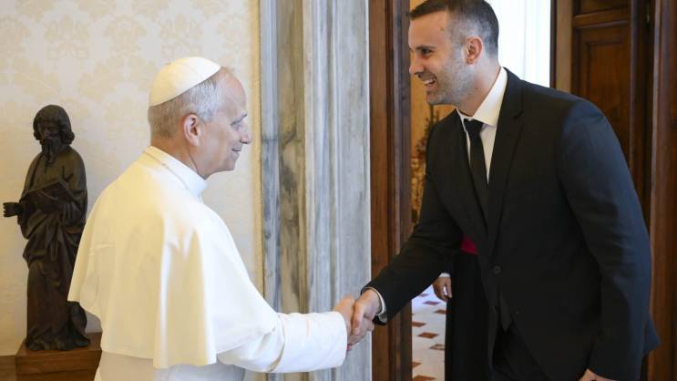 Prvoj audijenciji nekog crnogorskog zvaničnika sa novim poglavarom Rimokatoličke crkve, izabranim 8. maja 2025. godine, prisustvovali su još: ministar vanjskih poslova Ervin Ibrahimović, šef Kabineta predsjednika Vlade Branko Krvavac i otpravnica poslova crnogorske ambasade pri Svetoj Stolici i Suverenom viteškom malteškom redu Milica Petrović.