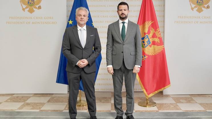 Šef Delegacije EU Johan Satler uručio je predsjedniku Crne Gore Jakovu Milatoviću Izvještaj Evropske komisije o napretku za 2025. godinu.