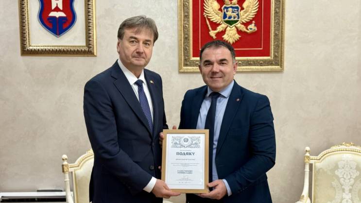 Gradonačelnik Prijestonice Cetinje Nikola Đurašković sastao se danas sa ambasadorom Ukrajine u Crnoj Gori Olehom Herasimenkom, a tokom susreta, ambasador Herasimenko uručio je gradonačelniku Đuraškoviću posebnu zahvalnicu, kao izraz priznanja za značajan doprinos socijalnoj rehabilitaciji ukrajinske djece koja su boravila na Cetinju u okviru projekta „Ljudi budućnosti“.