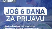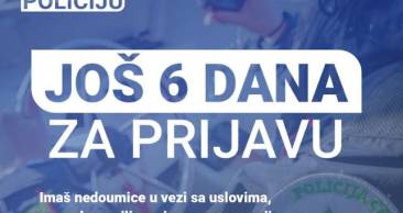 Ministarstvo unutrašnjih poslova podsjeća zainteresovane kandidate da je ostalo još šest dana za prijavu na javni poziv za zapošljavanje u Upravi policije, koji traje do 20. januara 2026. godine. podsjećaju iz ovg resora.