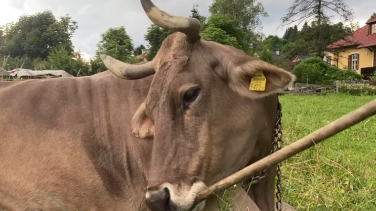 Jedan snimak joj je, međutim, posebno privukao pažnju. Na njemu se vidi smeđa krava koja koristi stare grabulje da se počeše po leđima, u idiličnom austrijskom selu.