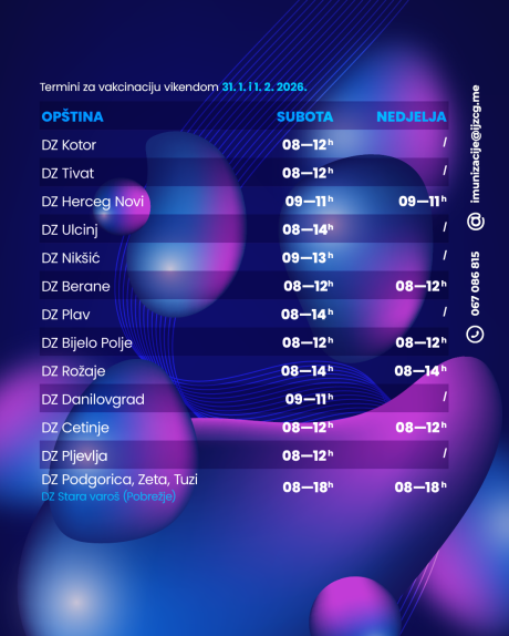 Naglašavaju da se termini vikendima organizuju kao dodatna mogućnost za svu djecu, bez obzira da li su direktno pozvani i da li imaju izabranog doktora ili ne, a naročito za „one koji kasne sa primanjem određenih doza vakcina“.