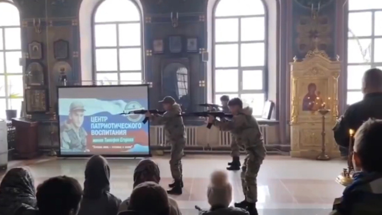 ????A military performance was held in a ????????Russian Orthodox Church temple involving teenagers in uniform armed with Kalashnikov rifles. pic.twitter.com/IW7u7XoK3E