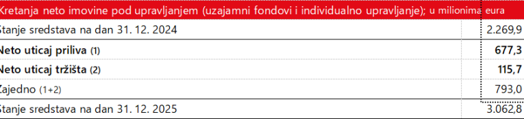Ukupna sredstva u upravljanju povećala su se za 6% na 6,3 milijardi eura.