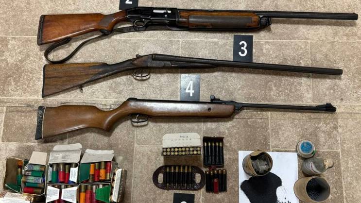 Iz policije su kazali da su njihovi službenici pronašli tri puške, jednu vazdušnu pušku, 459 komada municije različite vrste i kalibra, punjenje za eksploziv ukupne mase 500 grama, dijabole za vazdušnu pušku i staklenu bocu sa sačmom.