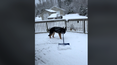 Korisnica TikToka, @catmat22, na svom profilu podijelila je viralni video koji prikazuje njenog njemačkog ovčara kako čisti snijeg.